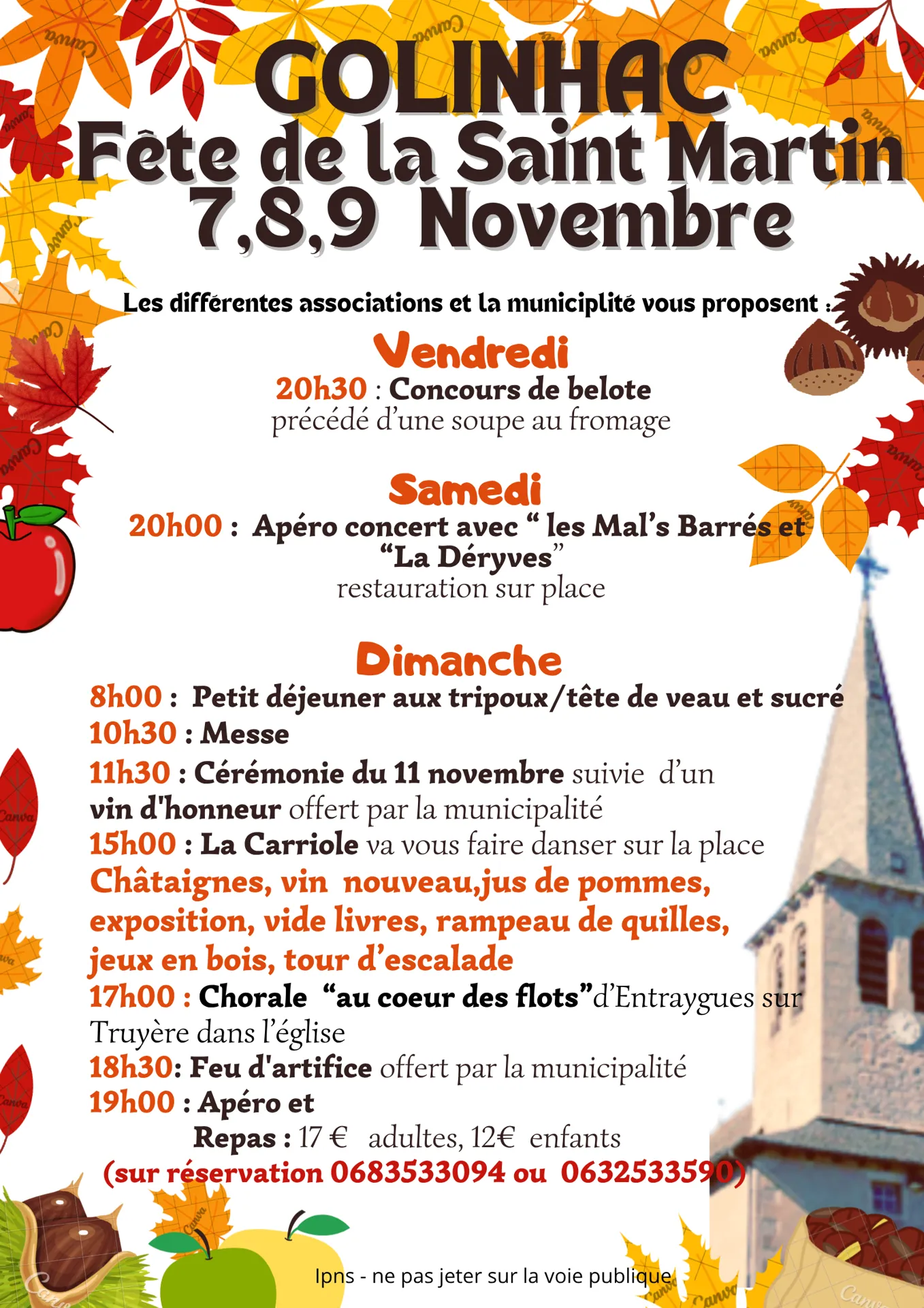 Fête traditionnelle du village où toutes les associations se retrouvent pour proposer un week-end festif mêlant belote, apéro concert, jeux, châtaignes, repas…