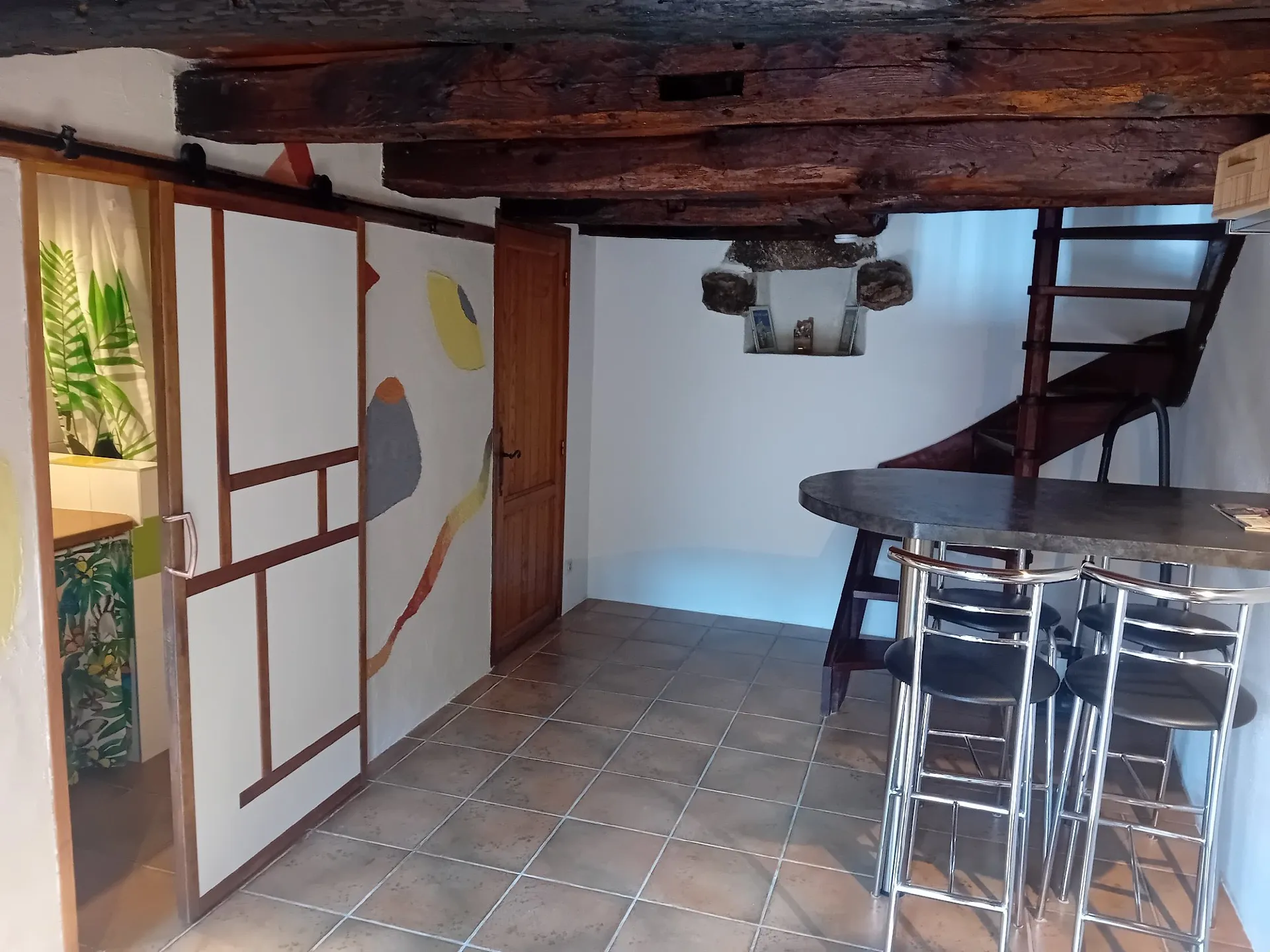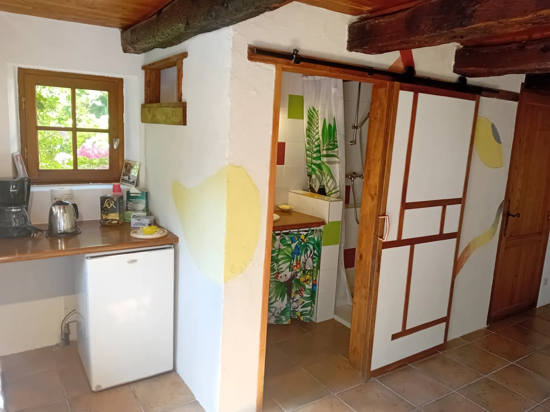 En plein parc de l’Aubrac, sur le versant sud du Lot, cette maison d’hôtes, toit en lauze de pays, de 1808, d’une superficie de 50 m², vous accueillera avec ses deux étages reliés par des escaliers : au deuxième étage, une chambre sous pente (un lit de 140, literie neuve) avec un magnifique plafond boisé, au 1er étage un salon de détente (équipé d’un lit de 110) et au RDC, un point cuisine et salle de douche indépendante des toilettes. Cet espace, rénové récemment, est entouré sur la partie nord d’un jardinet de 150 m² et d’une terrasse mitoyenne sur la partie ouest, juste à quelques pas d’une forêt dense aux multiples essences.